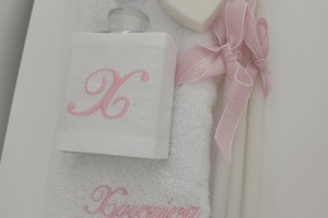 the set includes the oil bottle, the hand towel, the soap and the 3 baptistry candles