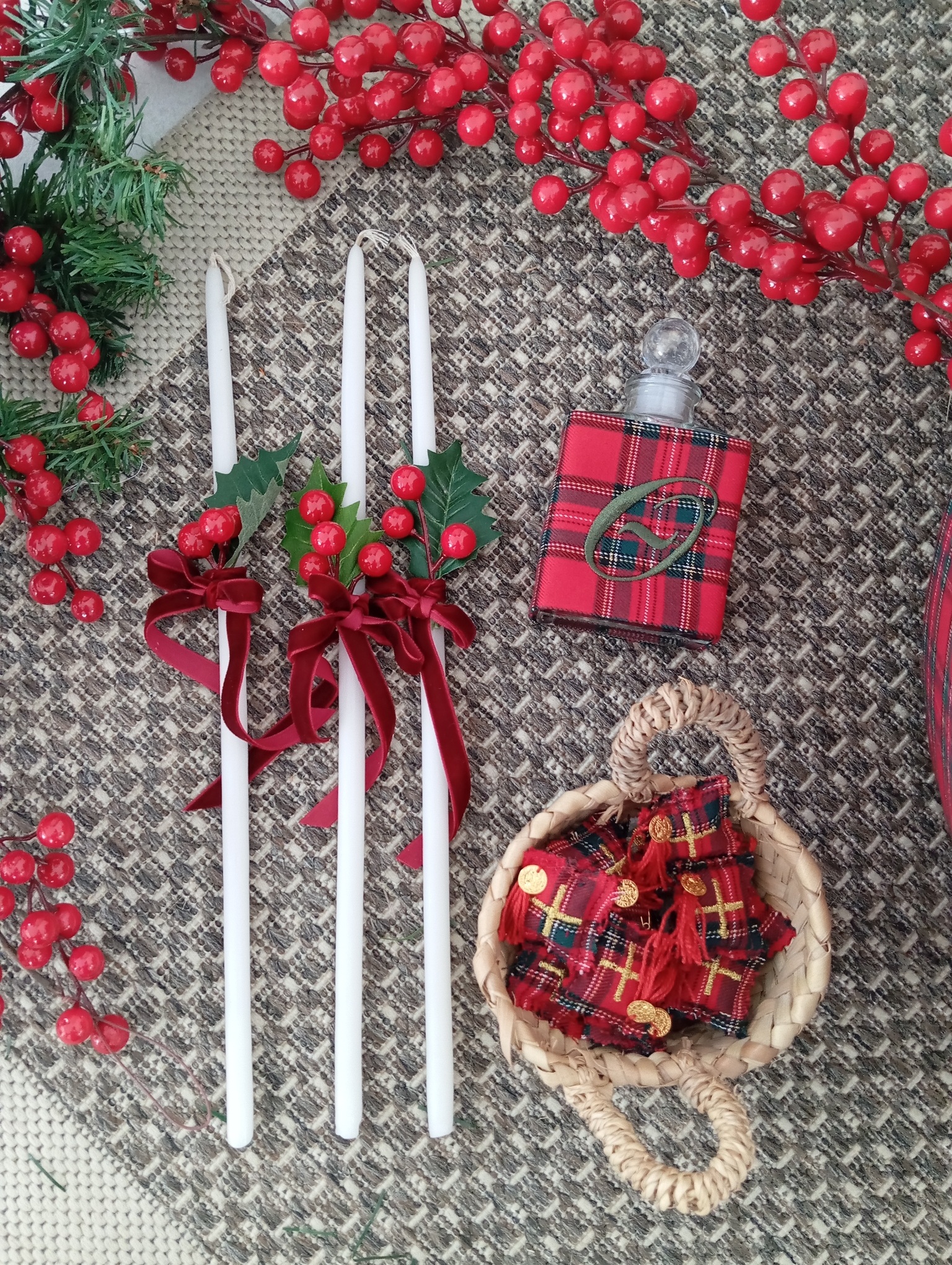το λαδοσέτ περιλαμβάνει το μπουκαλάκι λαδιού, το σαπουνάκι, την πετσέτα χεριών και τα 3 κεράκια κολυμπήθρας