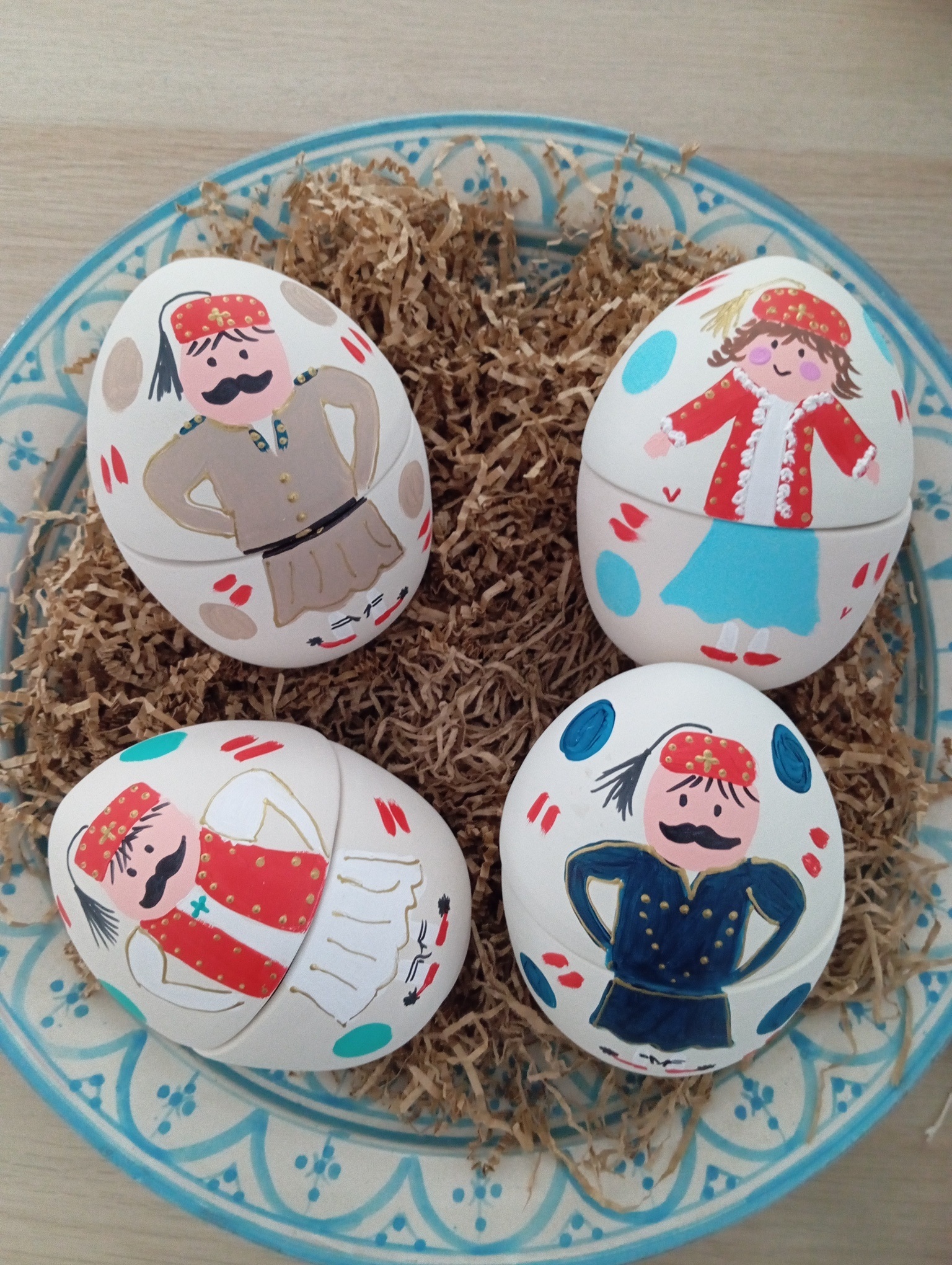 Διακοσμητικά, ανοιγόμενα κεραμικά και papier mache αυγά ζωγραφισμένα στο χέρι  γεμάτα με Ελληνικές